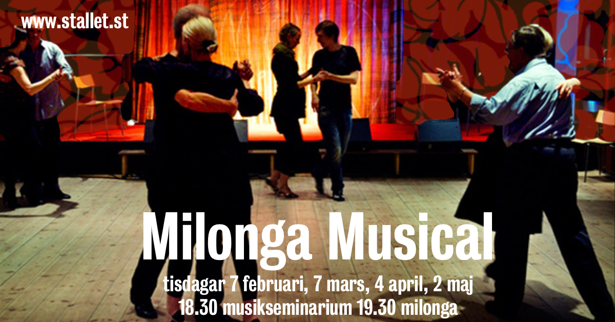 DJ spelar klassisk tango, vals och milonga. Första halvtimmen är dock öppen för mer experimentell musik – du är välkommen att ta med dig egen och lämnar till DJ:n. Före milongan är det ett musikseminarium eller dansverkstad med olika intressanta teman.